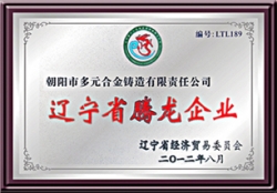 公司于2001年通過IS9001-2000質(zhì)量管理體系認證,生產(chǎn)的多元牌高錳鋼鑄件于2005年榮獲"遼寧省名牌產(chǎn)品"稱號。